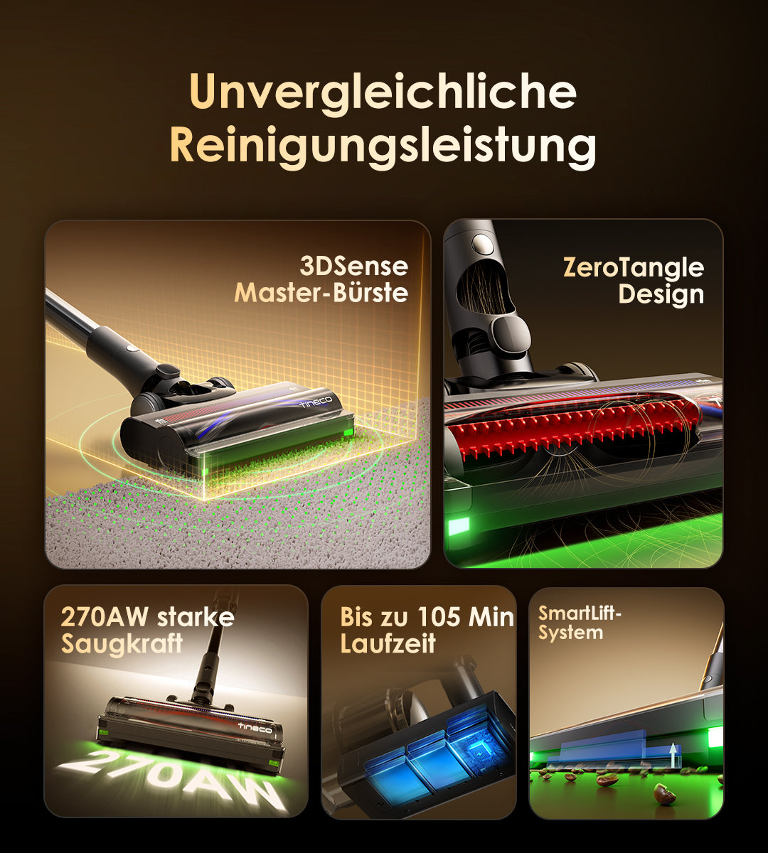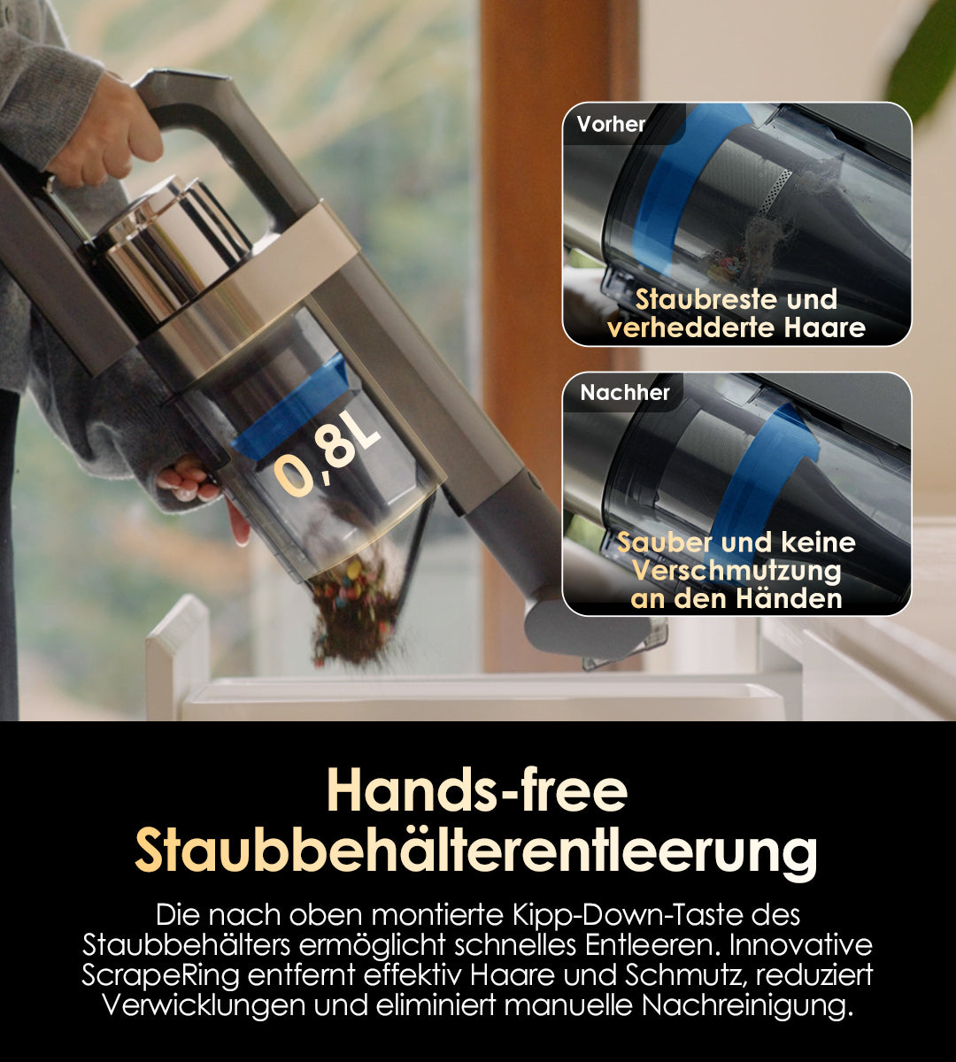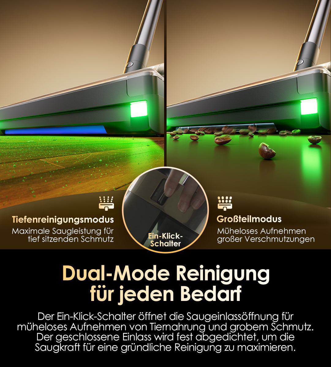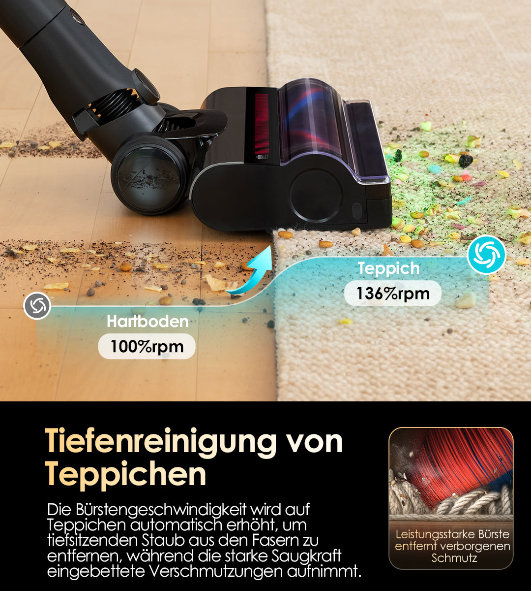 Erfasst schnell Staub, Schmutz und Tierhaare und sorgt für eine gründliche Reinigung.