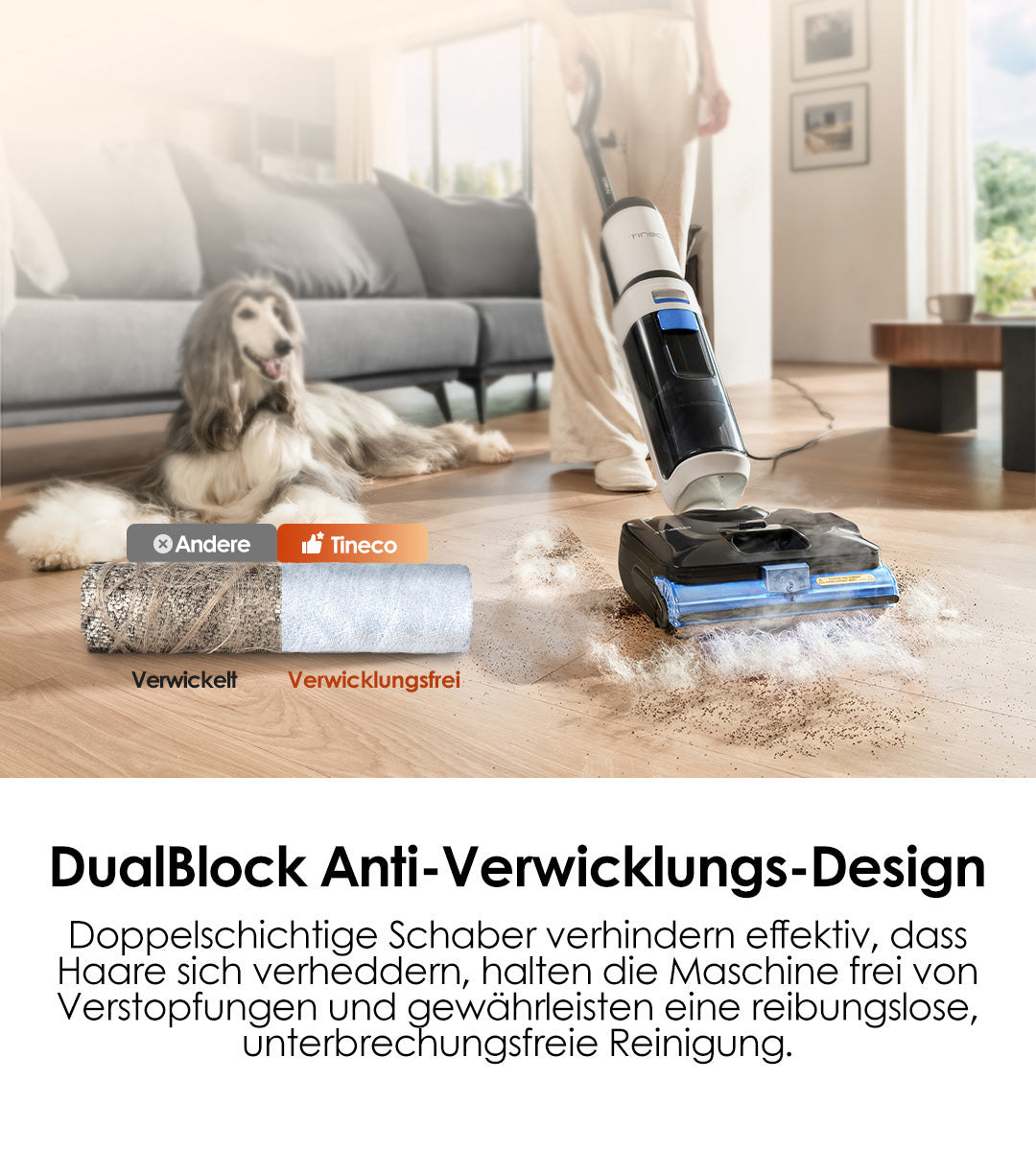 Bewältigt mühelos Haare und Tierfell, ohne sich zu verheddern.