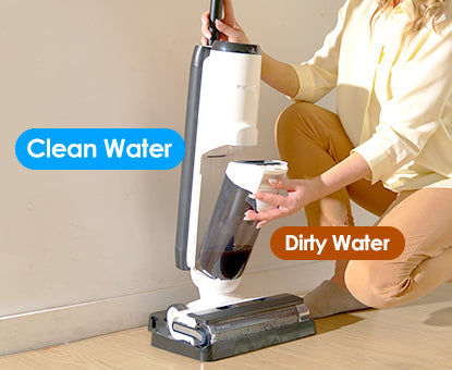 Equipped with Tineco’s innovative flat scraper, it clears away debris and squeezes out dirty water inside to ensure a clean brush roller every time, allowing you to clean floors with a clean brush. After cleaning, the iFLOOR 5 leaves your floors completely dry and streak-free in a matter of seconds.