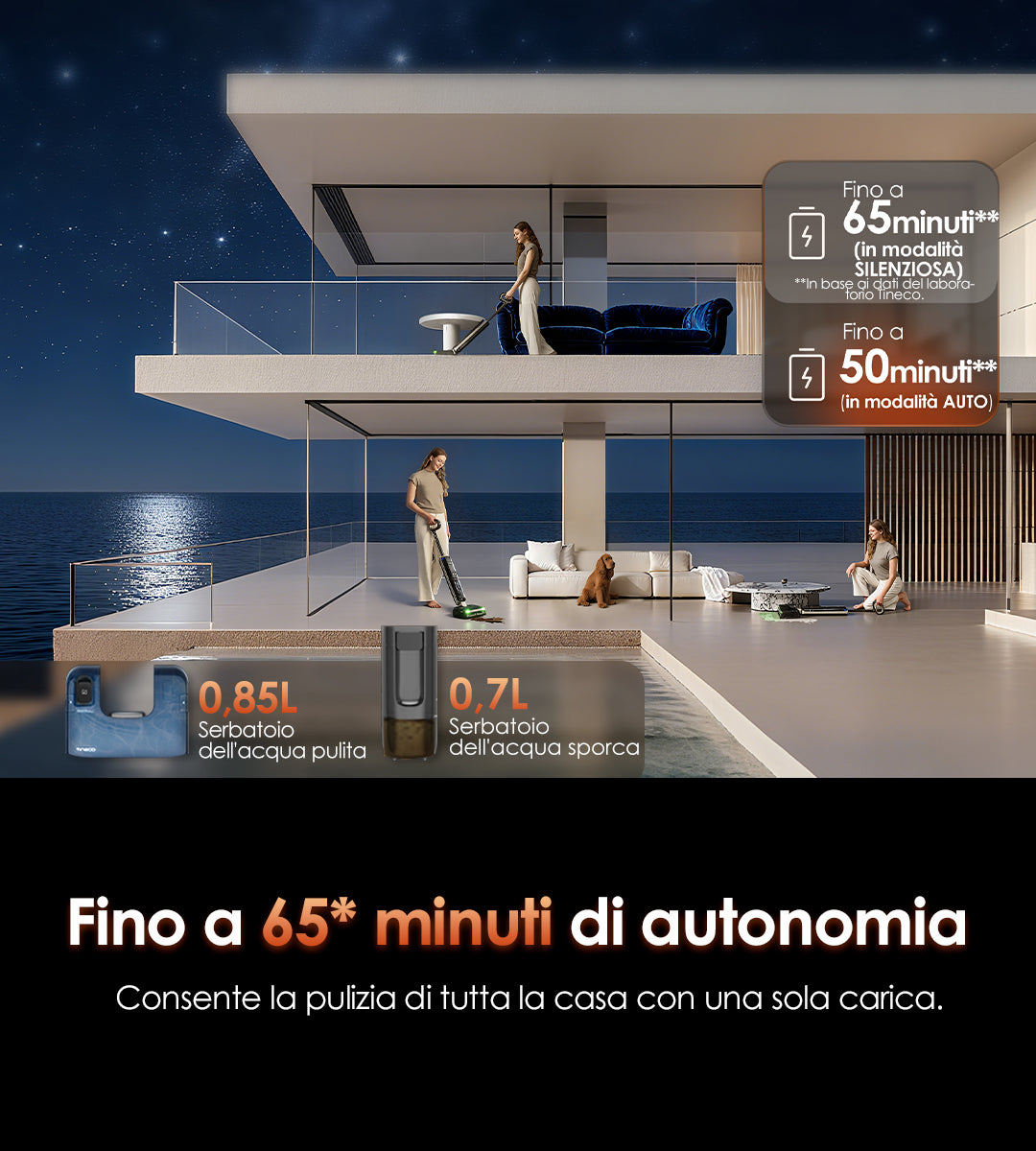 | Serbatoi d'acqua pulita/sporca | 0,85 L/0,7 L |