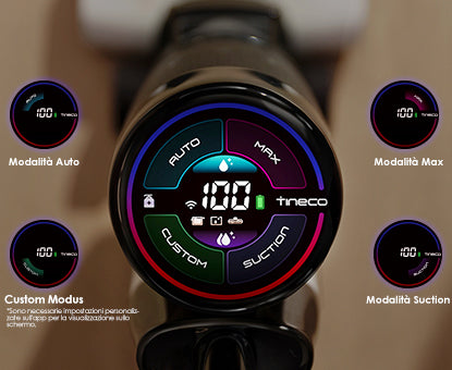 Lo schermo a LED con Tineco Assistant ti giuda attraverso il processo di pulizia; dall'arrivo rapido alla verifica dello stato di lavoro in tempo reale. Scegli tra Auto, Max, Modalità di aspirazione per diversi grandi di sporco e diversi scenari.