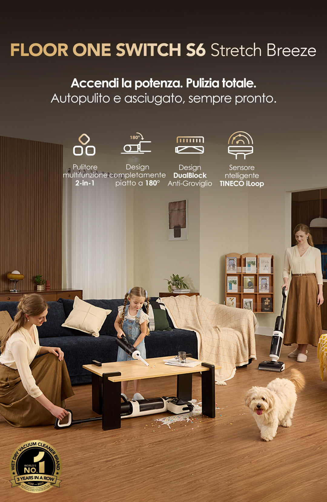 Tineco Floor ONE Switch S6 Stretch Breeze Aspirapolvere Lavapavimenti Multifunzione