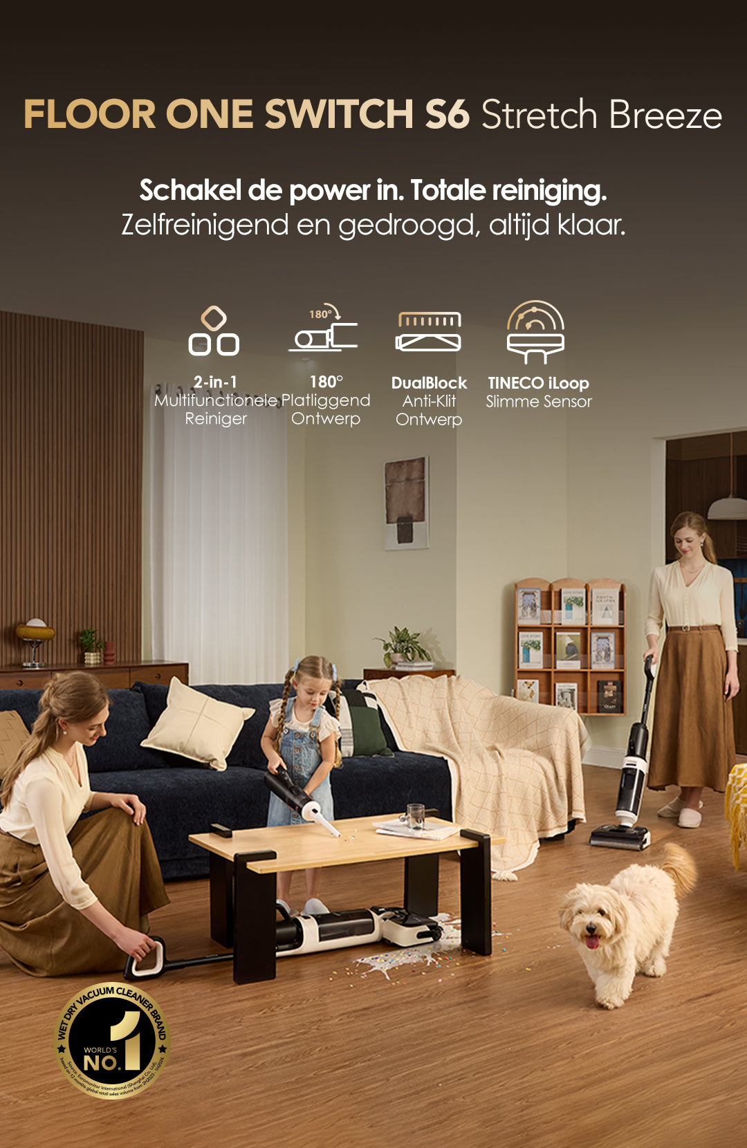Tineco Floor ONE Switch S6 Stretch Breeze Stofzuiger met Dweilfunctie
