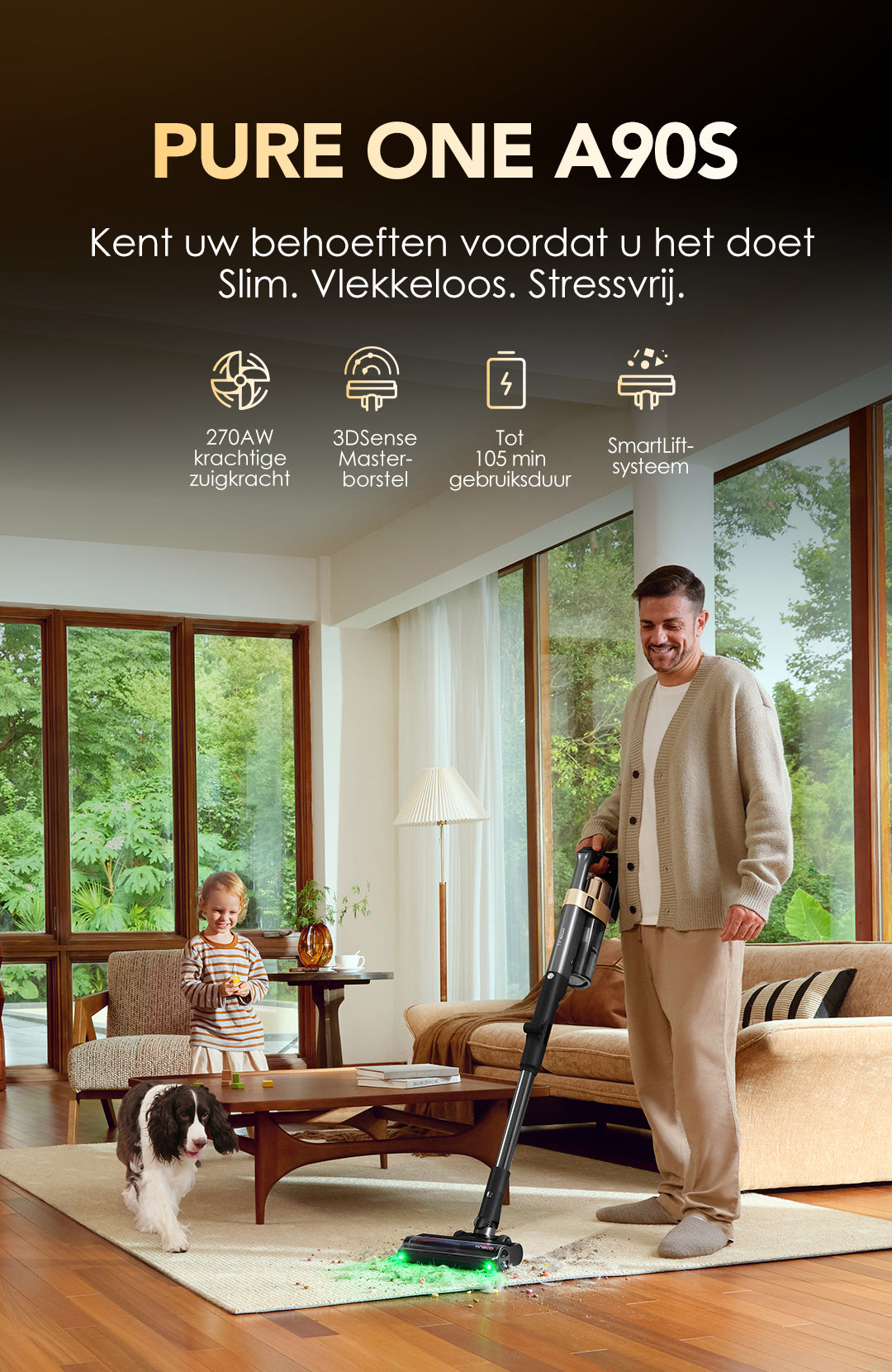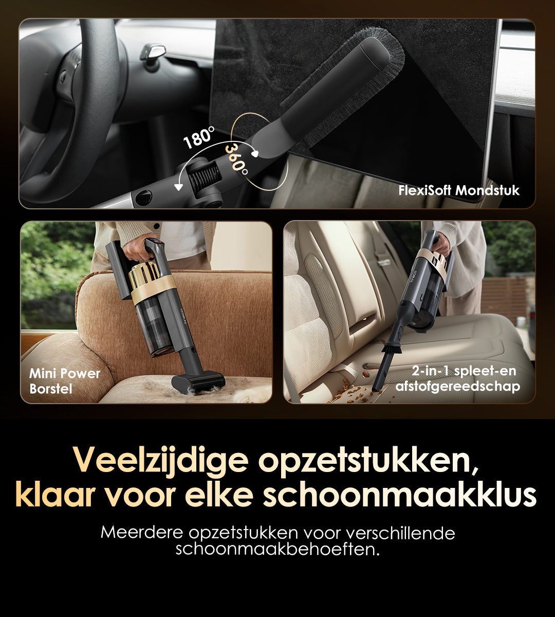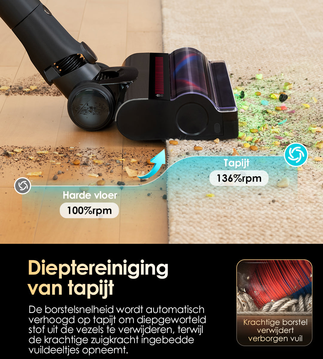 Vangt snel stof, vuil en dierenharen op en zorgt voor een grondige reiniging.