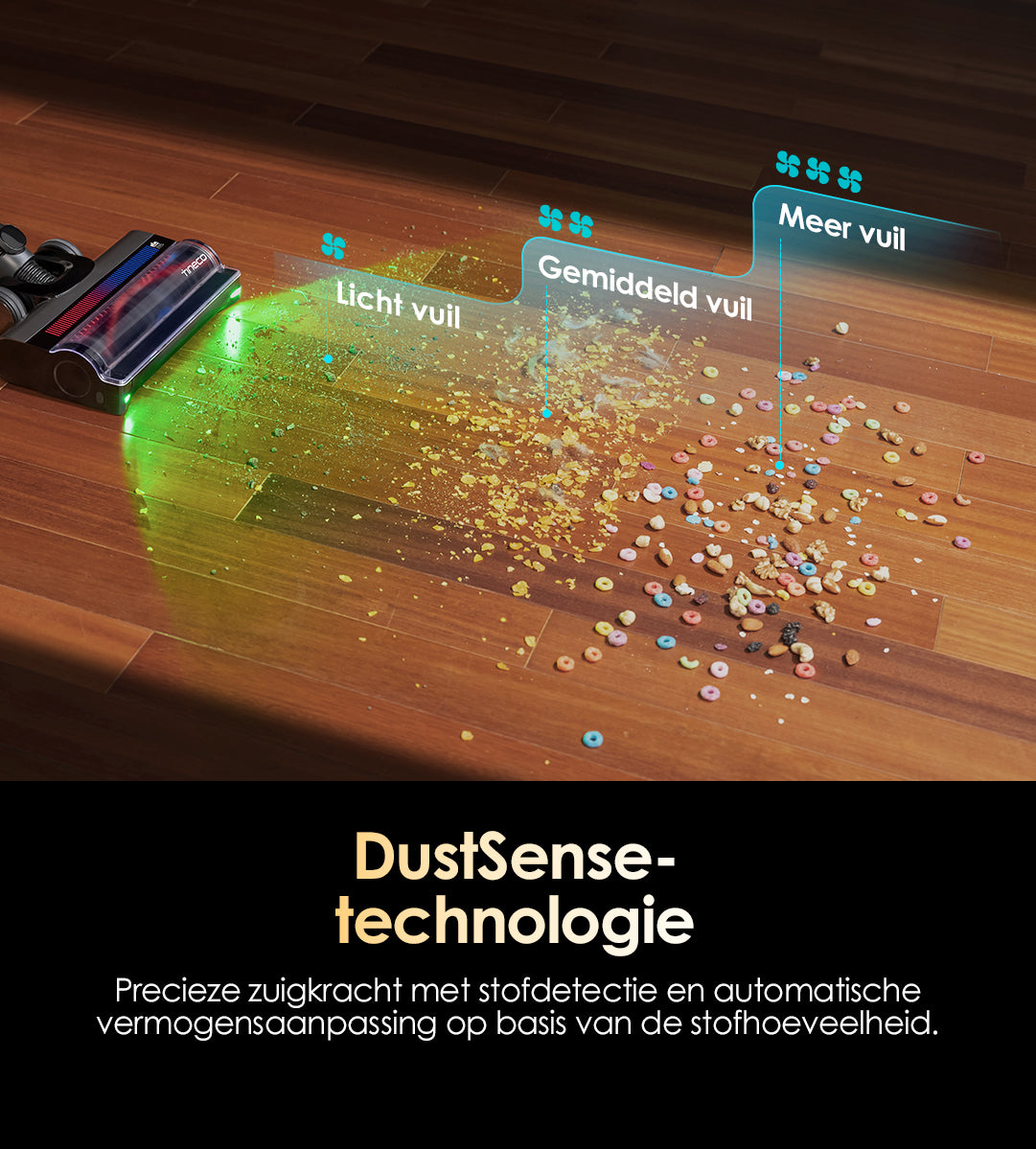 Combineert DustSense, EdgeSense en vloertype-detectie om een schoonmaakefficiëntie van het volgende niveau te leveren.