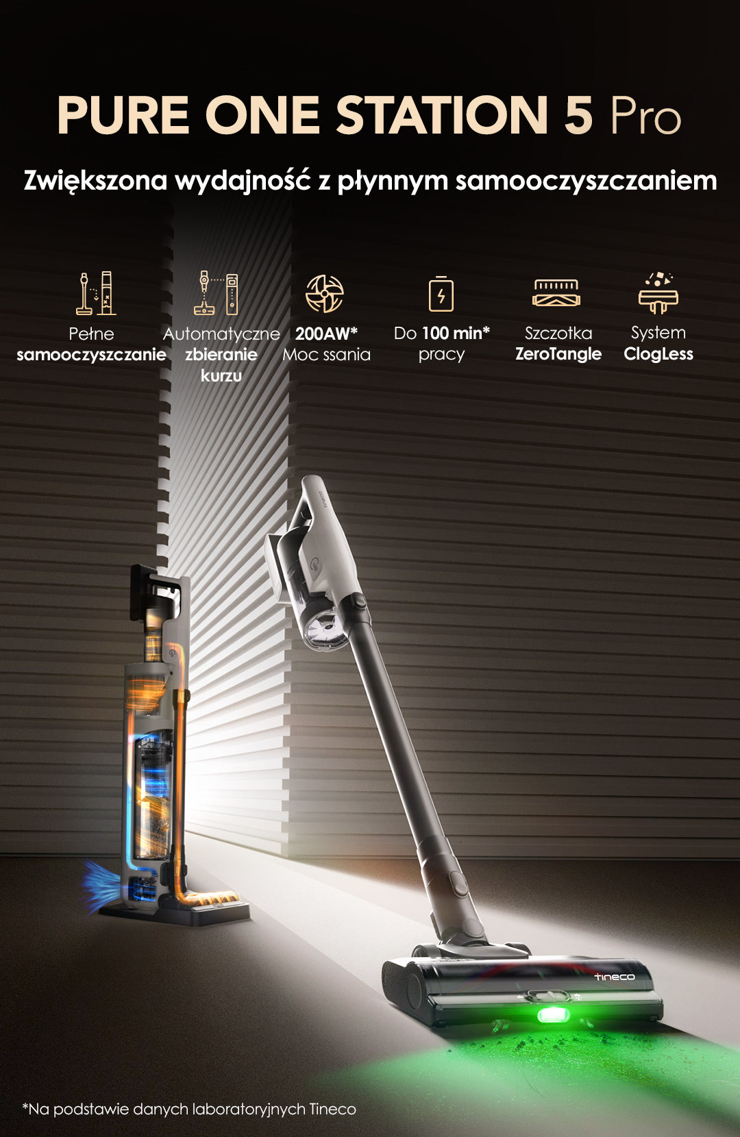 Tineco PURE ONE Station 5 Pro Bezprzewodowy inteligentny odkurzacz